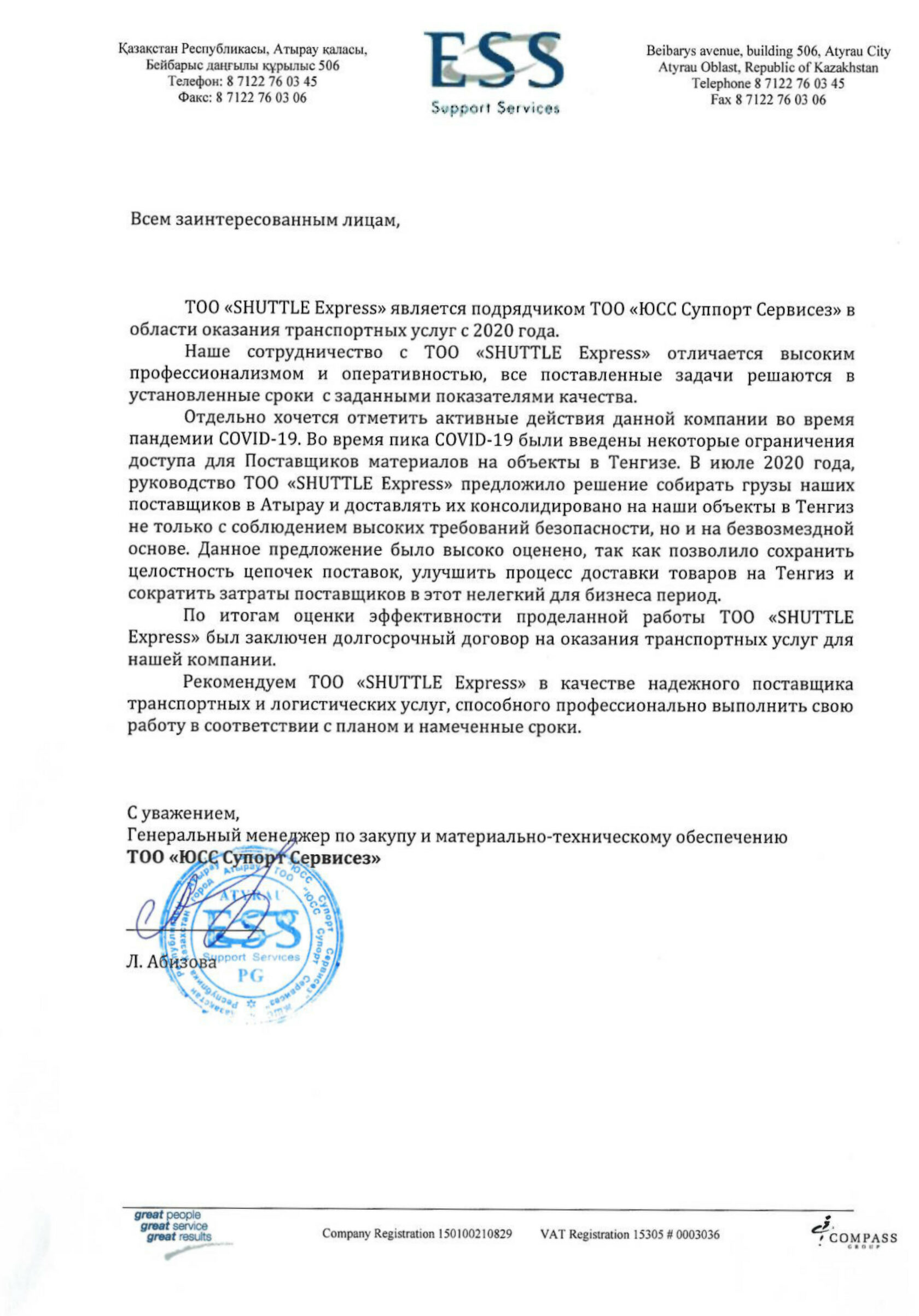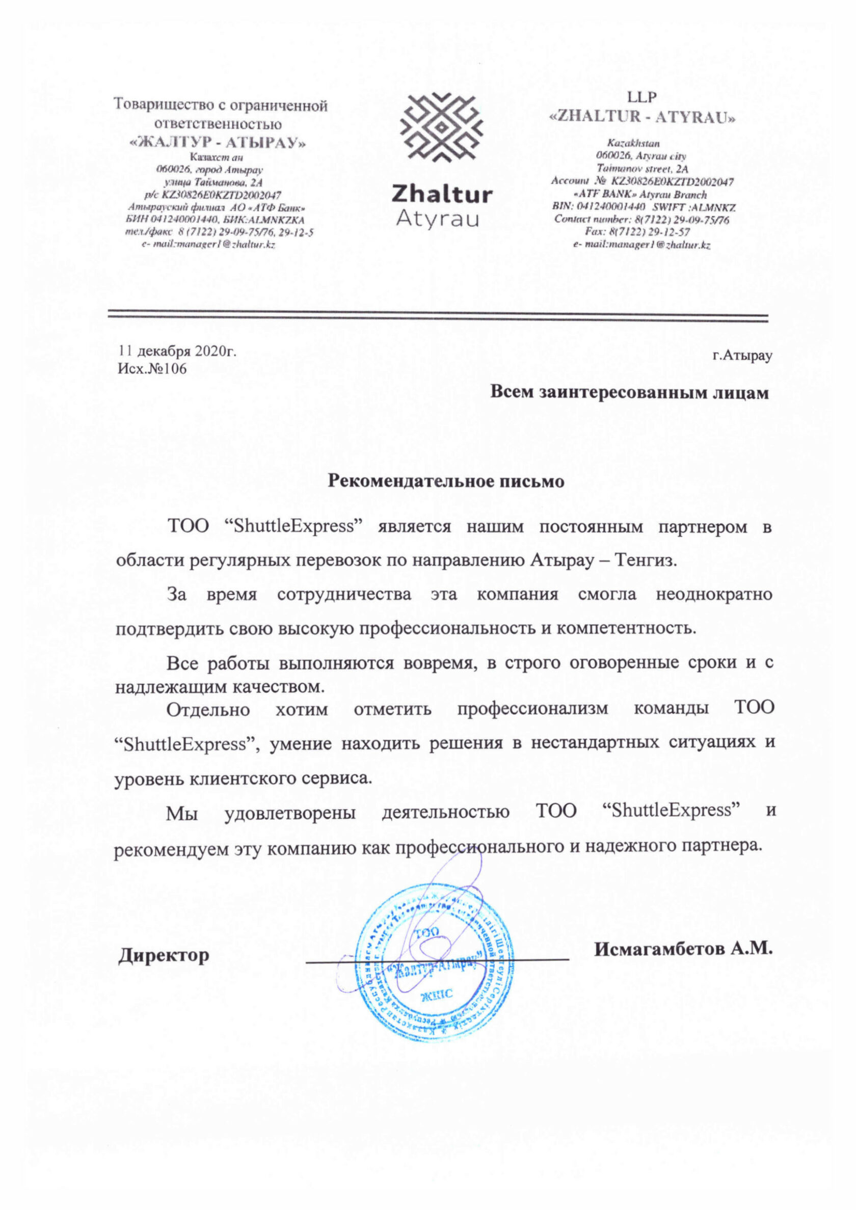 Компания Shuttle Express предоставляет склад для временного хранения груза в городе Атырау. Склад соответствует всем современным стандартам, обеспечен круглосуточным видеонаблюдением и пультом охраны, прожекторным освещением, системами вентиляции, отопления и пожарной безопасности.